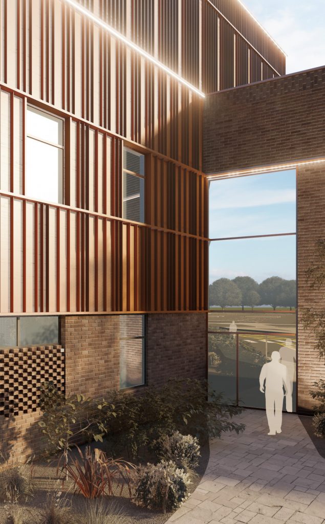 New building extension to the existing ED at Arrowe Park Hospital, accompanied with a major refurbishment and internal reconfiguration of the existing department to deliver upgraded, expanded, and enhanced Urgent & Emergency Care for the Wirral. The new department will provide a ‘one front door’ approach delivering accommodation to support Paediatrics, Adults, Minors, Majors, Urgent Treatment, High-Care, Ambulance Assessment, and Resus services. The new accommodation will also be supported with a new Staff Hub, providing new changing, administration, seminar, and break-out/rest area provisions. The new facility will deliver clear, legible entry points to access the department, with a dedicated new ‘ED Front Door’ for all non-ambulance arrivals, a new sensitively screened Ambulance Arrivals entrance, and new Staff Only Entrance to access the First-Floor staff hub directly. These entrances will help reduce vehicular and pedestrian flow conflict and help improve the privacy and dignity of patients who arrive via ambulance. Reconfiguration of the internal road network to the front of the new department will also provide greater ‘separation’ to the central car park and provide an increased pedestrian and landscaped zone, creating greater relief and space for safer pedestrian movement towards the new ED entrance, as well as the existing Main Entrance to the Hospital. As the site is situated within the Greenbelt, detailed consideration has been needed to support the development mass, scale and architectural façade treatments. As such, we have designed this new facility to respond commensurately to the site’s contextual proportions and materiality, whilst picking up aspects of fenestration and banding proportions from the existing site vernacular. The new extension will be formed utilising facing brickwork to the ground floor and staircase elements, to reinforce durability and respond to use of brick elsewhere across the site. The introduction of bands using solider coursing and header coursing will help provide further depth and visual interest to these elements of the façade. The upper levels and new ED Entrance are proposed to receive a ‘copper effect’ standing-seam treatment, to provide linear and horizontal form lines. These are proposed to help break up these areas, whilst also responding to the natural lines of settlement and formation of sandstone layers, which form the primary geology to the Wirral and local region. Formations. The emphasis is to deliver a high-quality environment both internal and external to deliver enhanced facilities to deliver effective and efficient urgent and emergency clinical care to the people of Wirral and beyond.